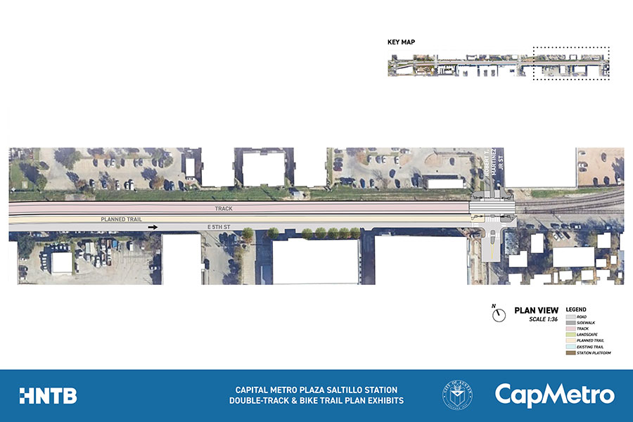 CapMetro and the City of Austin are working to double track the Red Line rail approximately between Attayac Street and Matamoros Street and make improvements to East 5th Street and the Red Line Trail. The goal is to improve rail service reliability, capacity, system resiliency, customer experience and the quality and comfort of the Red Line Trail while maintaining access and improving safety for everyone traveling in the area.